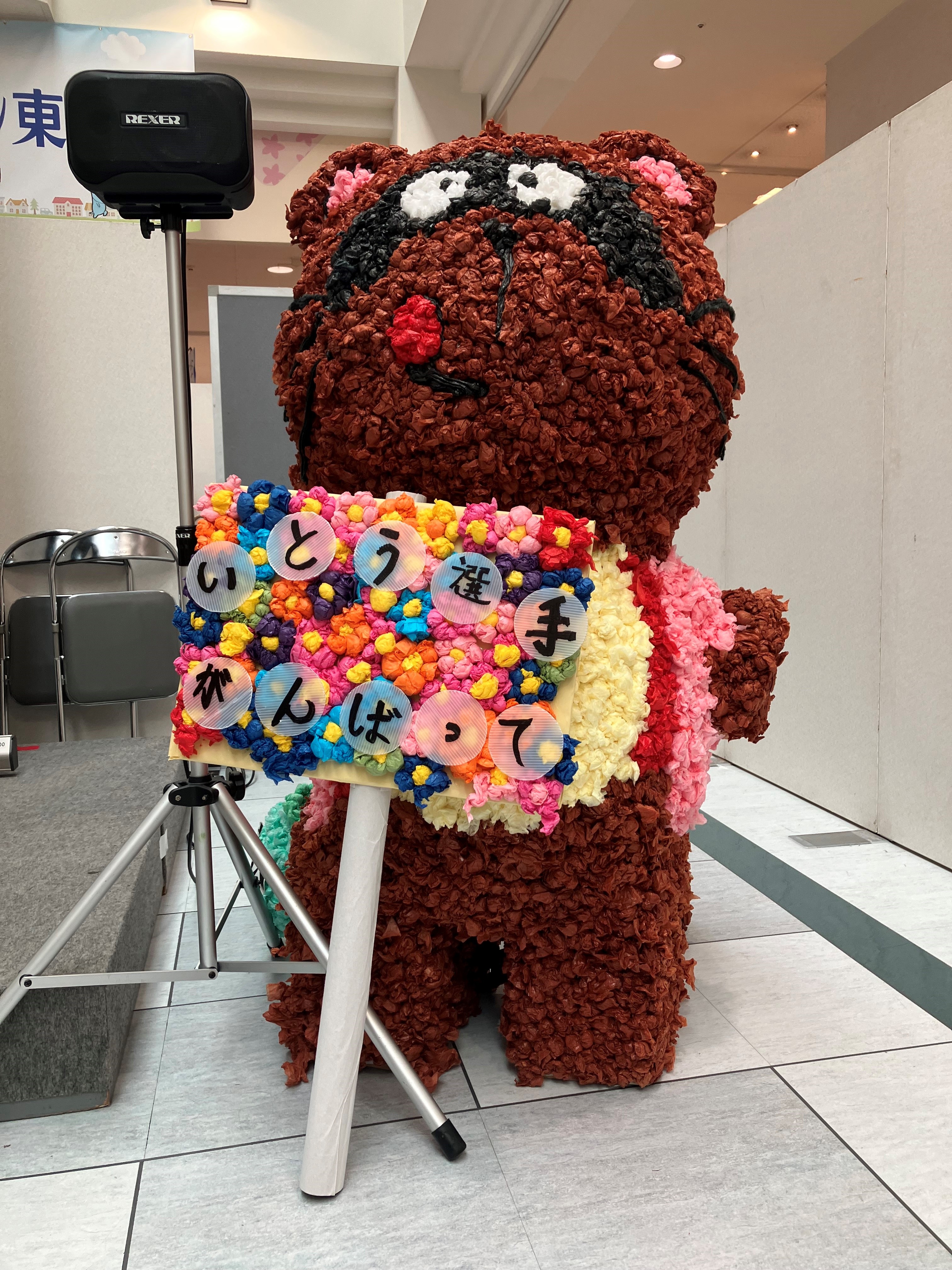 利用者さんから「伊藤選手、デフリンピック出場おめでとうございます。のん太は松陽祭の祭りで作りました。のん太も私たちも応援しています。頑張ってください。」と選手にエールを送りました。
